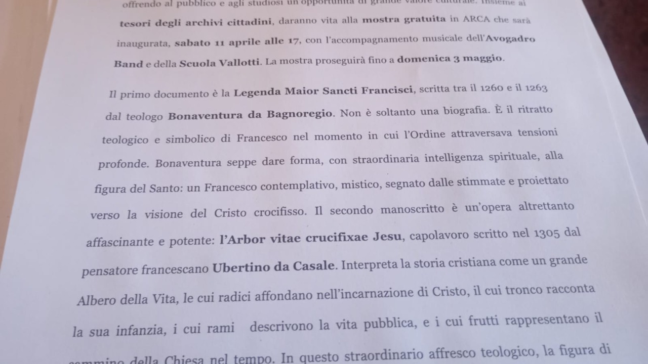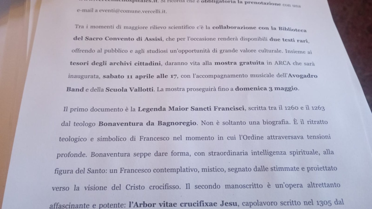 Scheda ha poi elencato i 75 eventi gratuiti in programma per la terza edizione, che si svolgerà dal 10 al 19 aprile. Tra le novità, spicca l’esposizione di documenti rari e preziosi legati agli 800 anni di San Francesco.